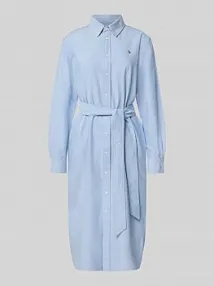 Sukienka koszulowa o kroju oversized z wiązanym paskiem Tommy Hilfiger niebieska