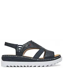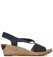 granatowe sandały na obcasie Rieker